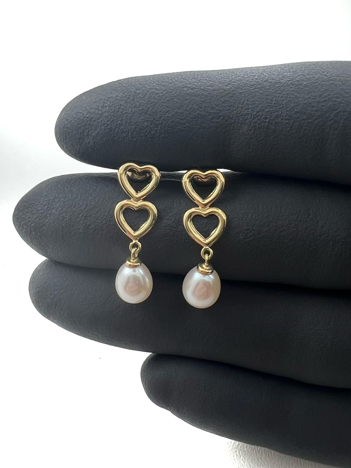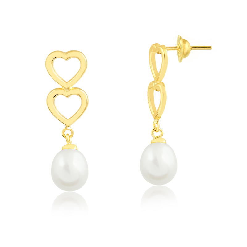 Material: Ouro 18K/750 Modelo: Coração Vazado e pérolas Peso: 1,60g Comprimento: 2,3cm