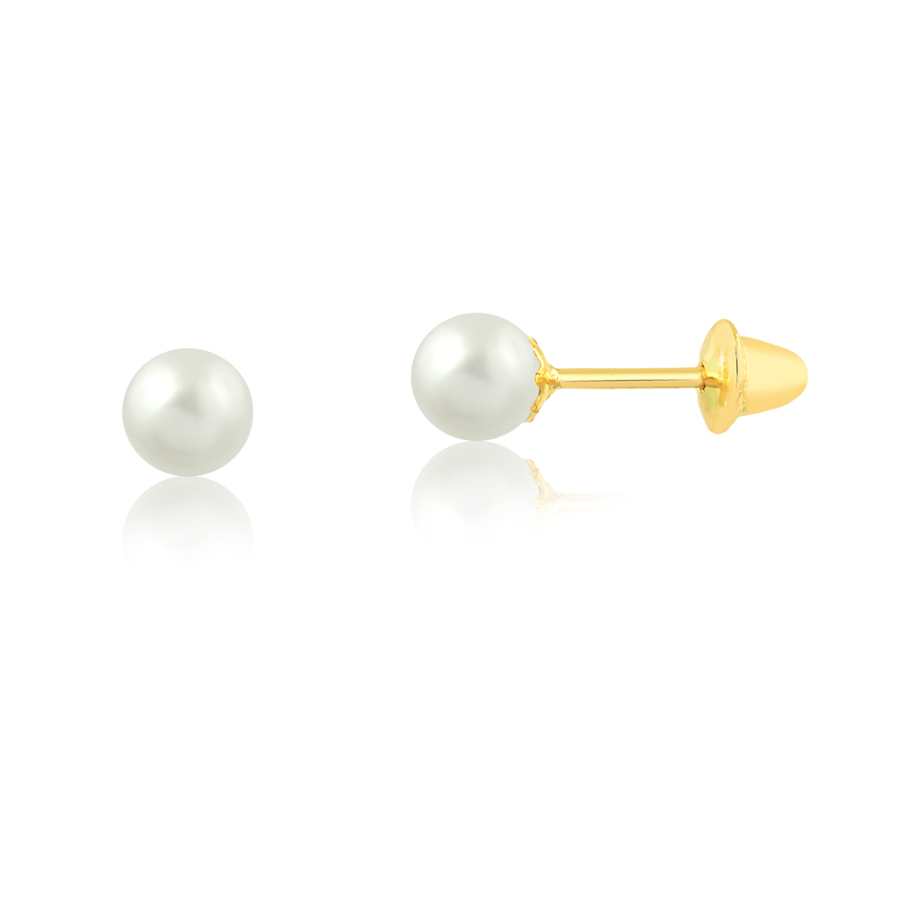 Brinco Ouro 18K Infantil | Pérola 3,5mm
