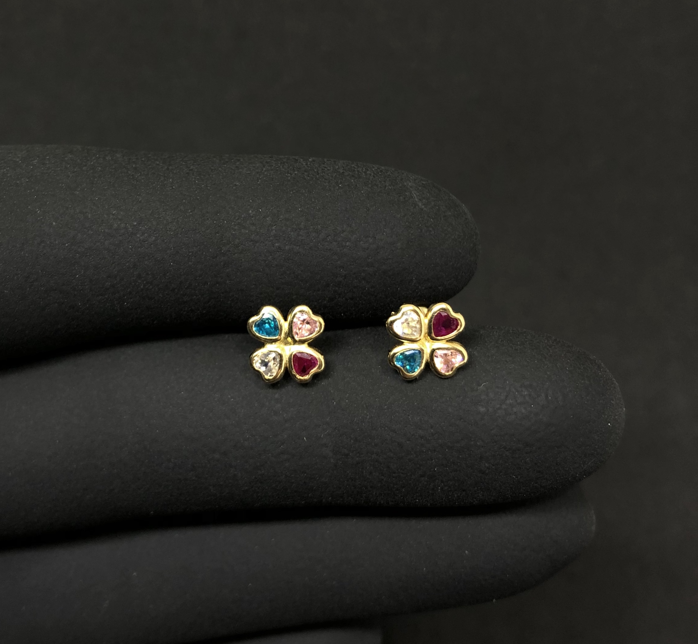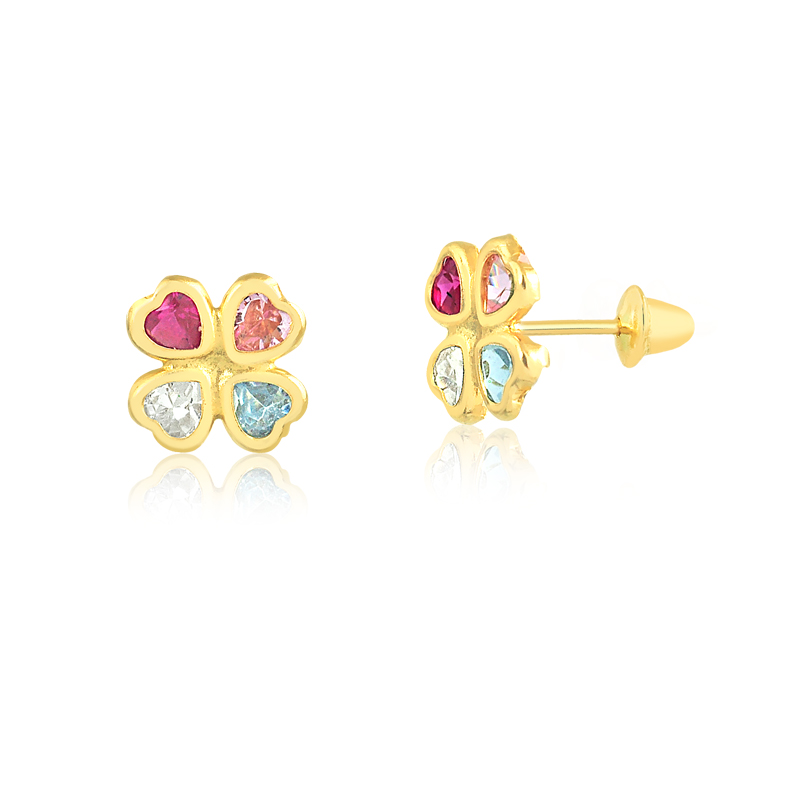 Brinco Ouro 18K Infantil | Trevo Pedras Coloridas