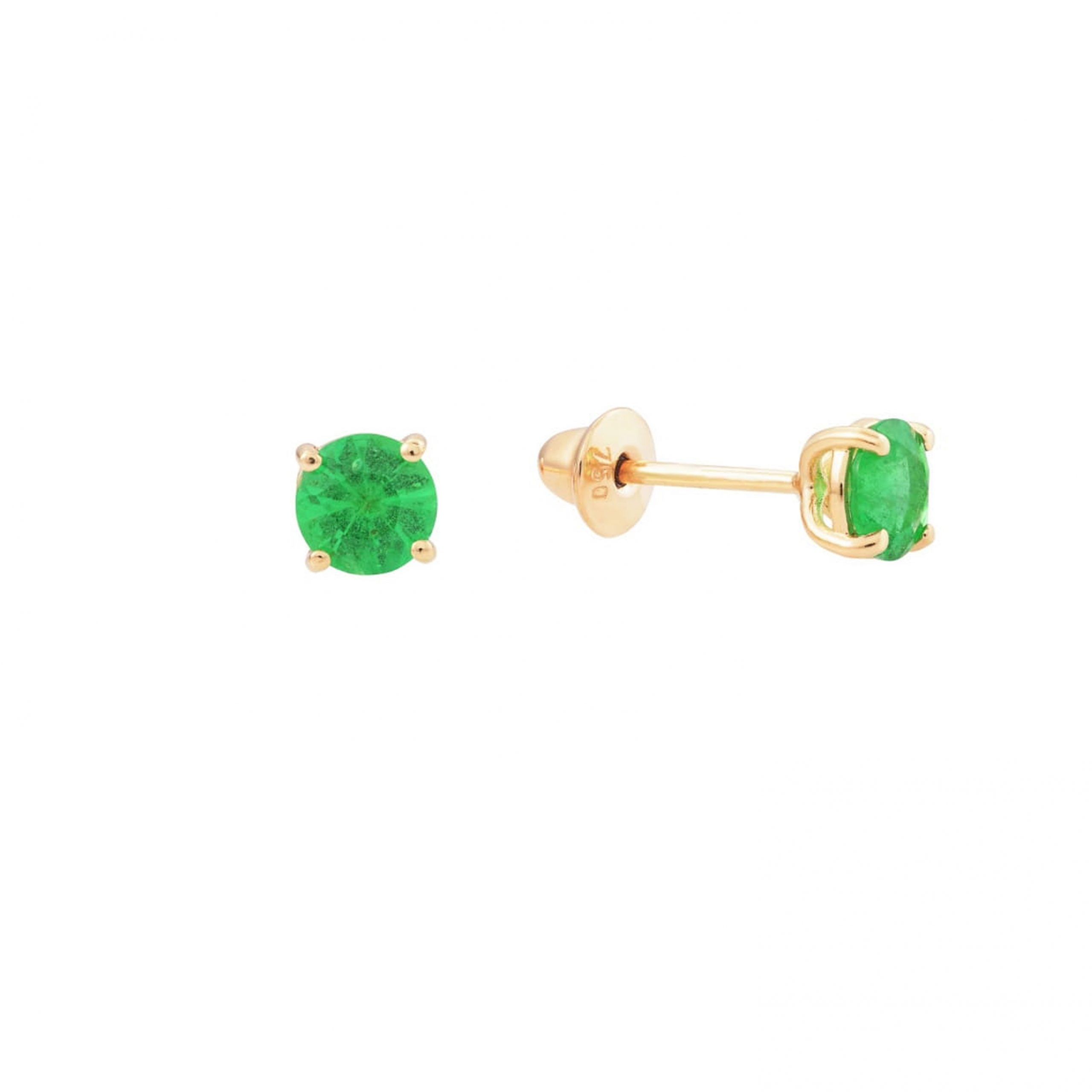 Brinco Ouro 18K Pedra Esmeralda
