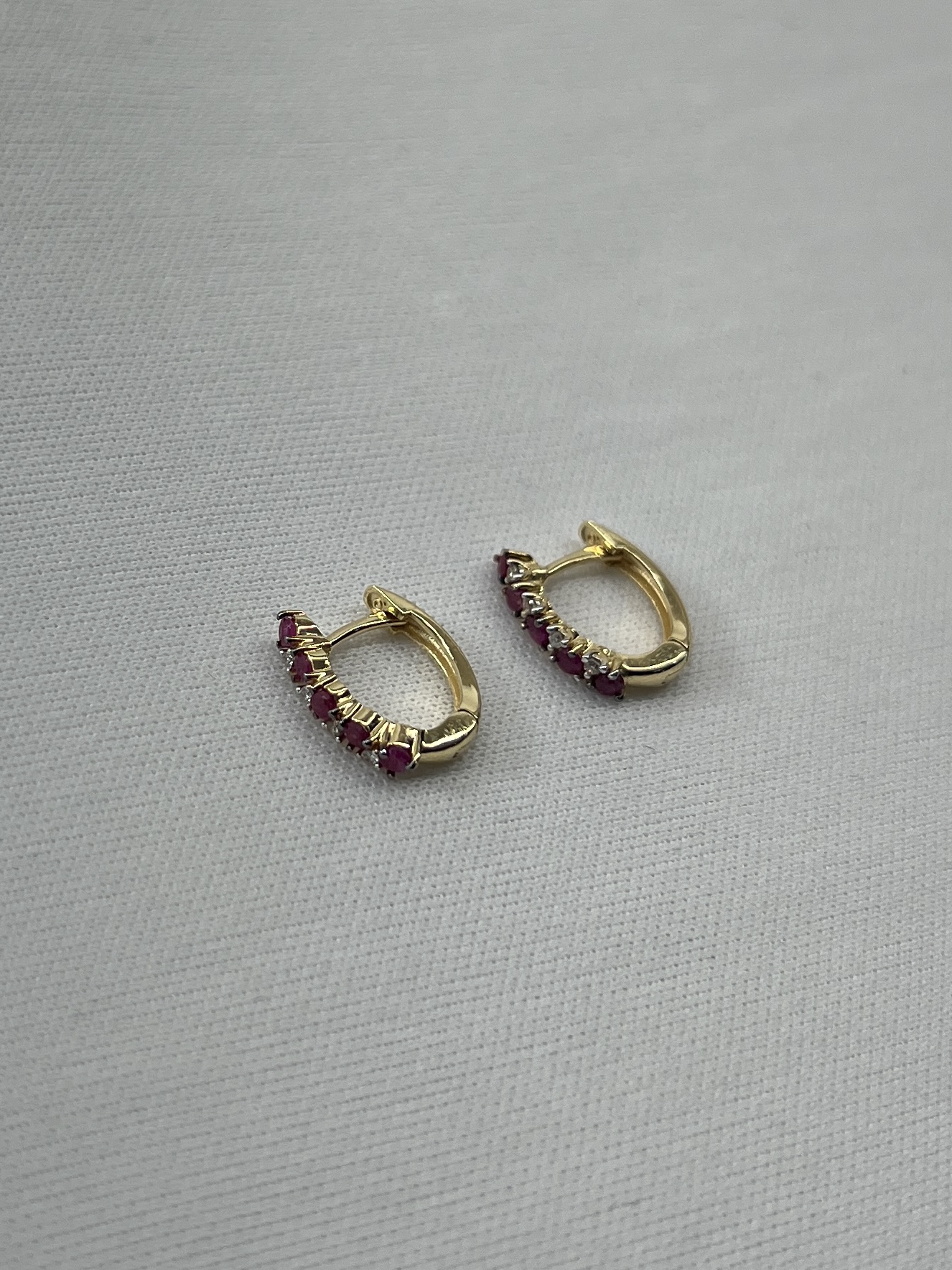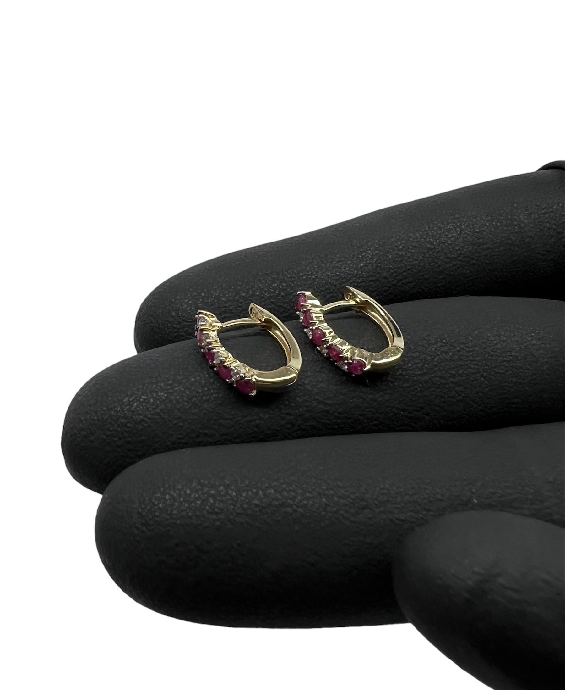 Brinco Ouro 18K Pedras de Rubi e Brilhantes
