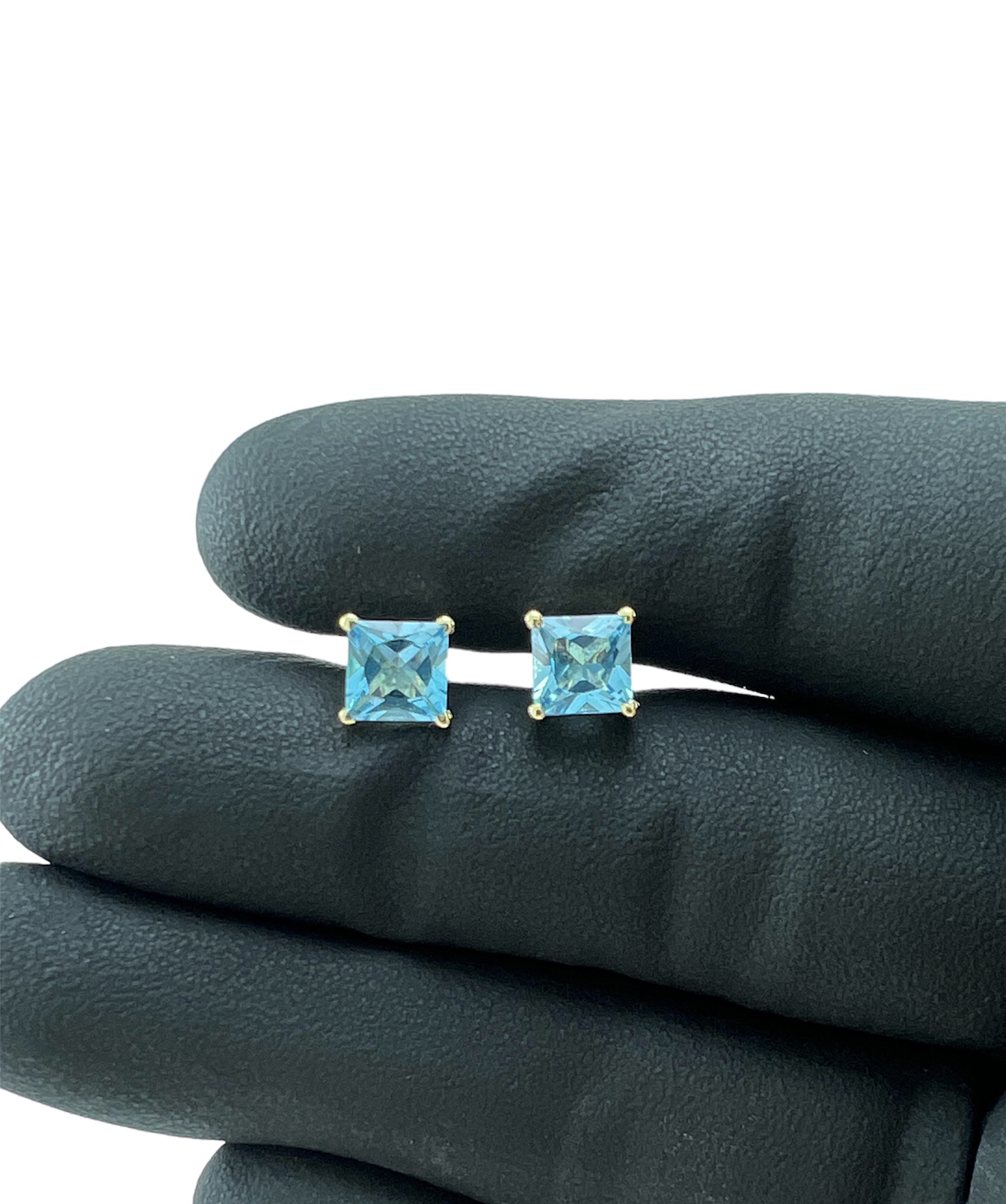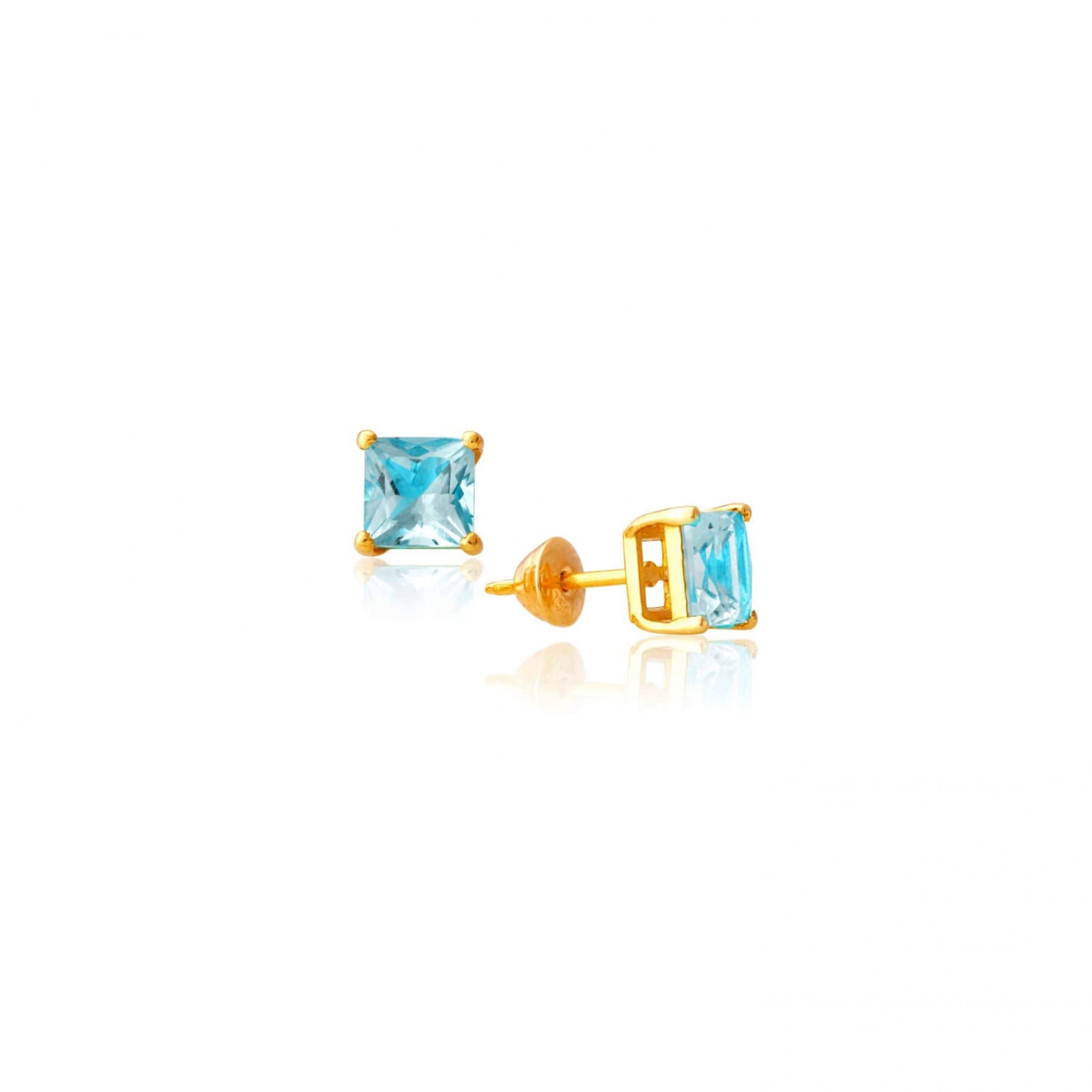 Brinco Ouro 18K Pedra Topázio Azul